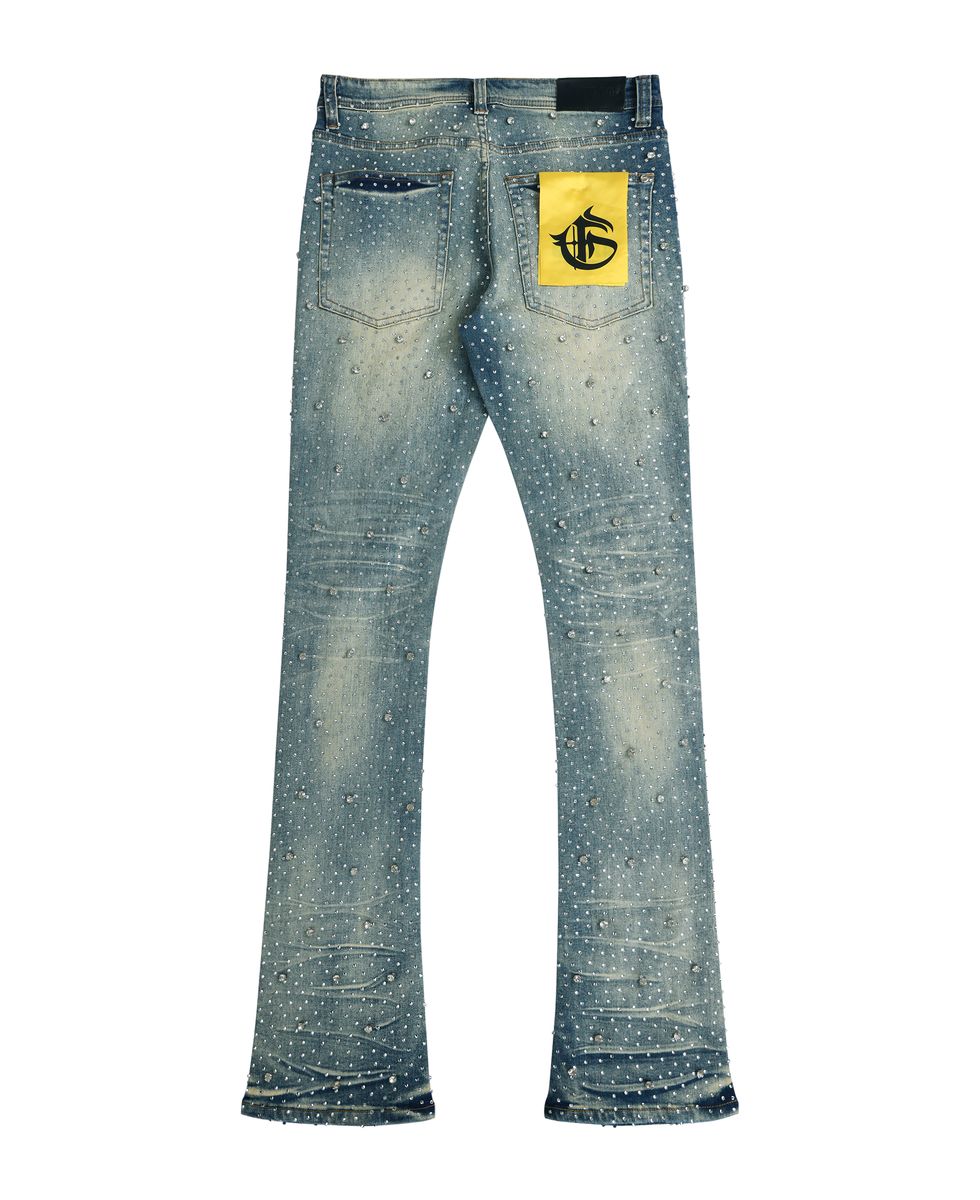 GFTD LA - JAZZ MD WASH DENIM - featuring an eye-catching stone embellishments throughout. This statement piece combines classic black wash denim with intricate beadwork that catches the light beautifully, creating dimension and visual interest. The stones add texture and personality to every angle.