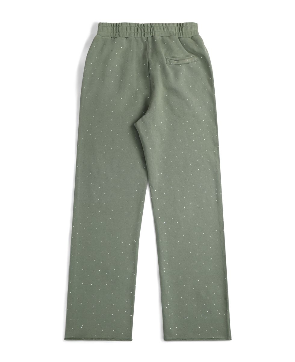 DAGGER OLIVE PANTS- Crafted in a sophisticated OLIVE tone, these pants feature an exquisite bejeweled design that cascades across the fabric, adding a touch of glamour to every step. Perfect for those who appreciate refined style with a hint of sparkle, these classy pants transition seamlessly from day to night. The intricate embellishments catch the light beautifully, making them an ideal choice for special occasions or when you want to make a statement.