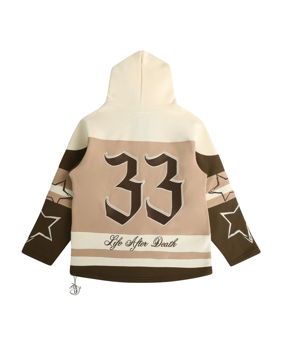 GFTD LA - Pathaway Bone Hoodie - a striking box-cut design hoodie featuring long sleeves that features DTG printing that brings every detail to life. The powerful star design paired with "Life After Death" wording and the significant number 33. This isn't just a hoodie; it's a wearable declaration of your style. Free GFTD LA Metal key ring.